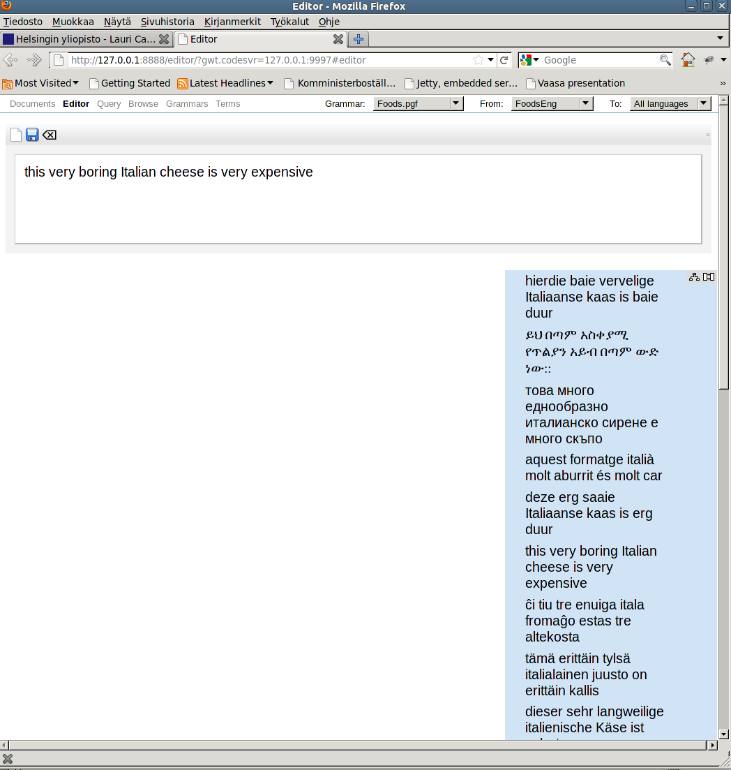 When comparing MOLTO to popular translation tools like Systran (Babelfish) and Google Translate, the main difference is the intended user of the tools: these tools target end-users of information whereas MOLTO targets producers of information.