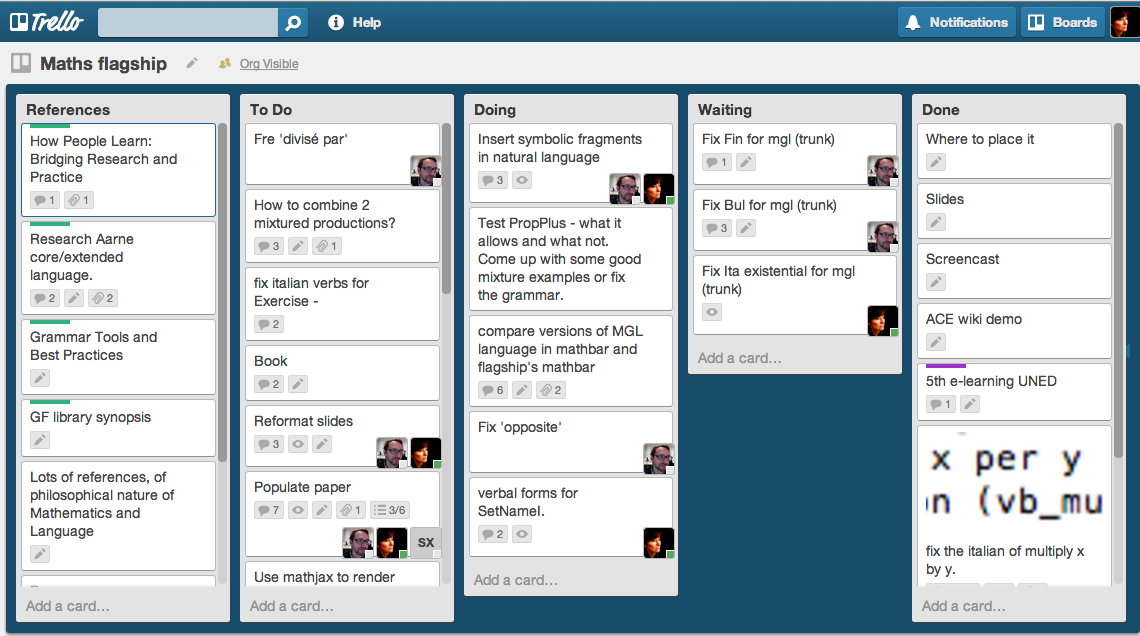 This is an evolving description of the work plan of MOLTO, divided in work packages and in tasks. The document is meant to track what the MOLTO Consortium is planning to do, what it has completed so far and the status of the ongoing research. It is the responsibility of the work package leader to enter tasks and to keep them up to date so as to reflect the work done by the group.